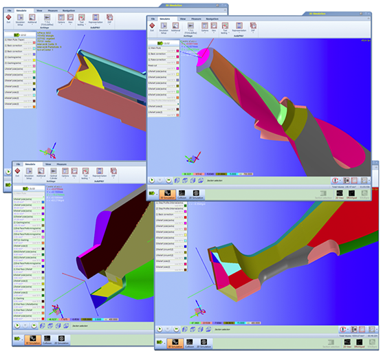 The application has a tree structure, in which the compound elements open and close according to the user intention to introduce or to trace information. The corresponding parameters of the tool are structured on operations, providing a quick access to the desired information. For every operation in the tree we have attached the following groups of information: specific processing options, geometry, kinematics, technology of processing, definition of the working cycles, corrections, specific technological parameters, the technique of input and output from processing. For the treatment operations of the flute, there is the supplementary possibility of calculating the form of the abrasive wheel starting from the theoretical form of the groove.